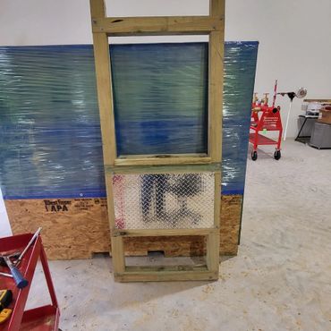 The window framing is constructed of pressure treated 4" x 4" lumber and secured to the galvanized high-strength steel framing.